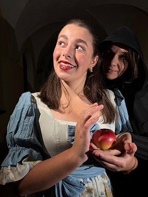 „Spieglein, Spieglein an der Wand, wer ist die Schönste im ganzen Land?“ Der Zauberspiegel hätte eigentlich so einiges zu erzählen, aber er muss der Königin (Dali Wirnsberger) immer dieselbe Frage Beantworten. Die Königin ist nicht nur schrecklich eitel, sondern auch fürchterlich eifersüchtig auf ihre wunderschöne Stieftochter Schneewittchen (Darija Wirnsberger) und eines Tages beschließt kurzerhand, das arme Mädchen mit Hilfe des Jägers ein für allemal loszuwerden.